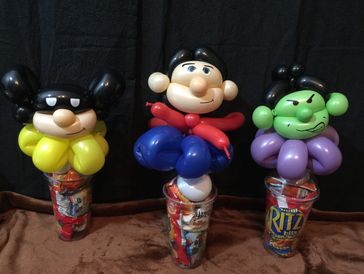 Let us take away the stress of making party favours. We fill a cup with candy and attach a balloon animal on top. Customizable to any theme with delivery options available.